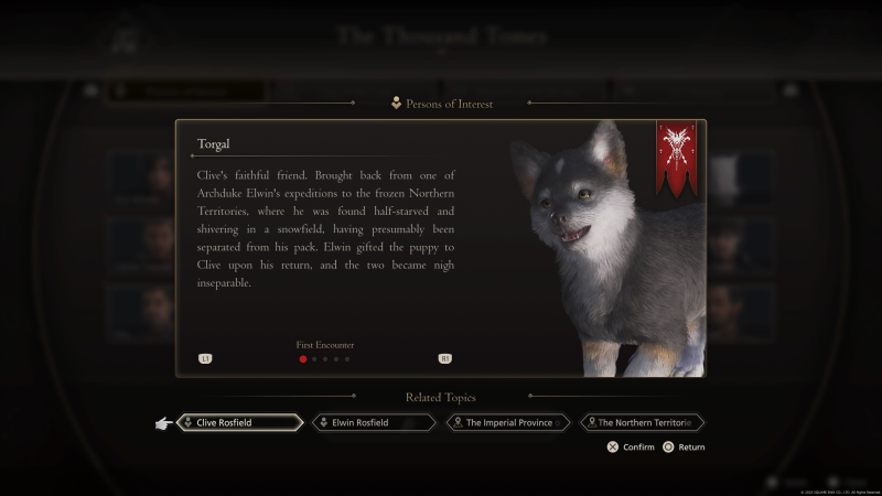 要更深入地了解您在过场动画中可能错过的故事元素,您可以访问游戏早期发现的 Cid's Hideaway 中心的 Harpocrates 和他的千卷书。当你在整个冒险过程中拜访他时,你可以告诉哈波克拉底你所见过的事情和遇到的人,他会相应地更新他的档案。千卷书不仅允许您查看任何活跃时间传说条目,而且还为您可能想要温习的其他条目提供快速建议。例如,“Eikon”条目可能会将您链接到“Dominant”、“Magic”和“Crystal”。