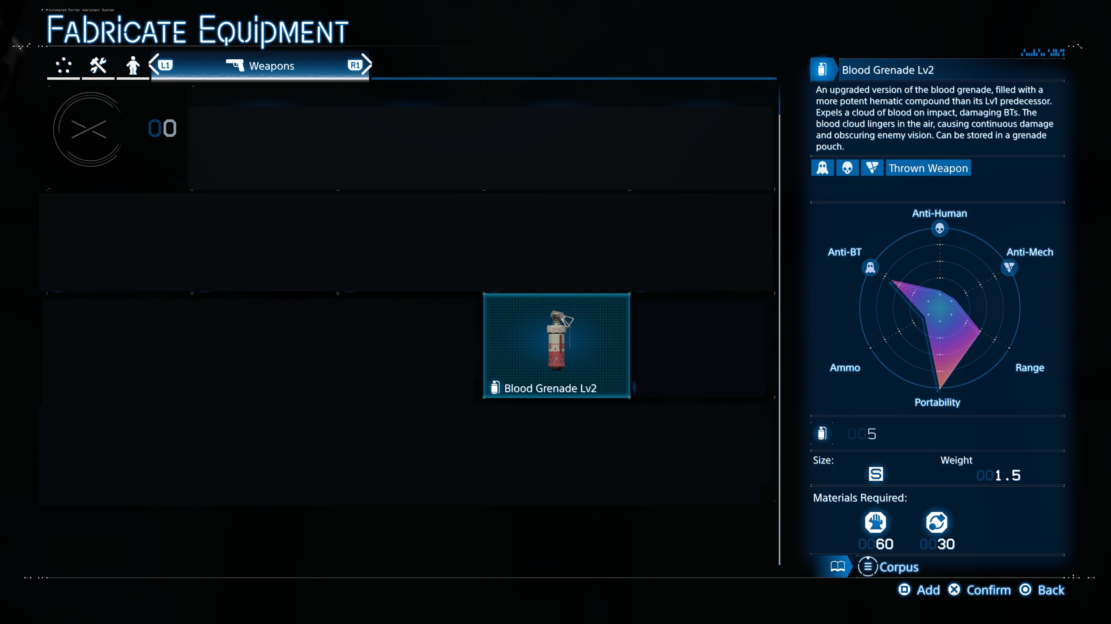 - 血手榴弹 Lv1:这些武器对付BT很有用,连接C1南部配送中心后不久,玩家就有机会试用。