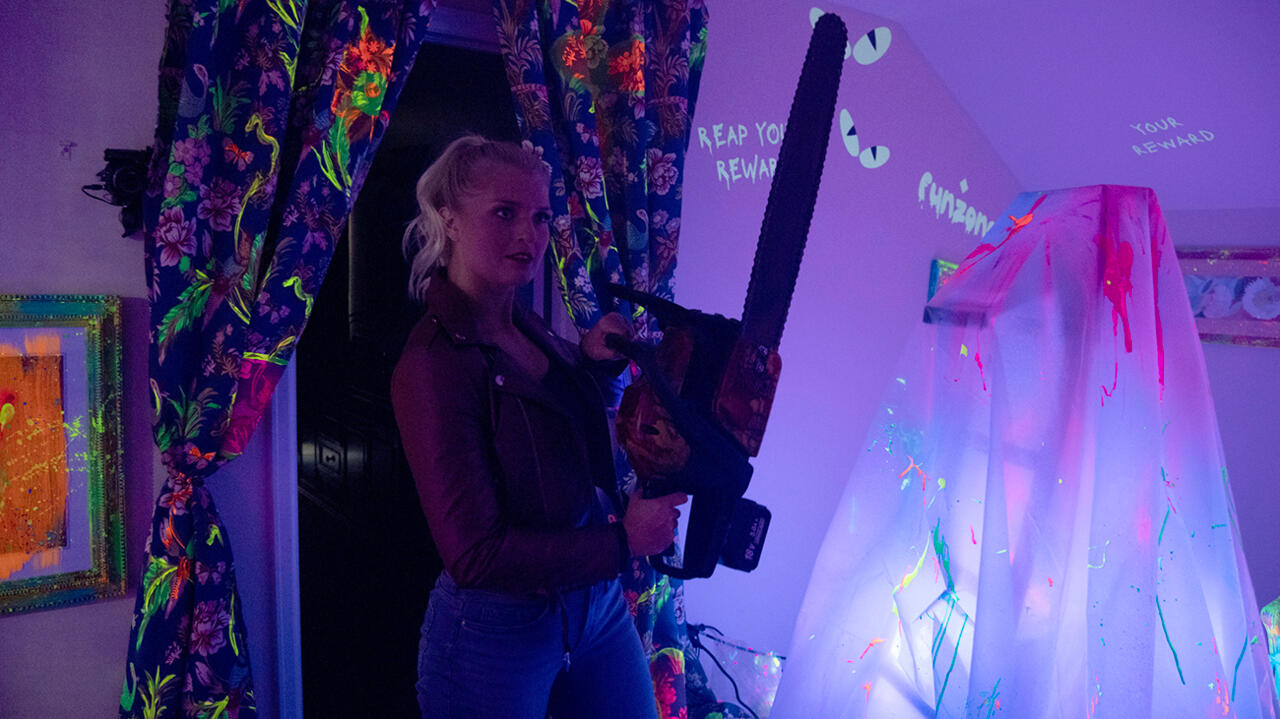 每次体验时长约 15 分钟,且高度个性化。对于 Freaky 体验,总共只有四位客人参与(我、我的同伴和另一组两人)。当我把提供的“请勿打扰”牌子贴在客房门上后,我就被带到了旅馆的三楼,怪异的体验开始了。对于那些没有看过《怪诞星期五》的人来说,这基本上就是《怪诞星期五》,只不过是一个十几岁的女孩和一个男性连环杀手交换了身体。另外,你应该看那部电影。这很有趣。为了完成手头的任务,我们必须找到米莉,她在电影中由凯瑟琳·牛顿饰演。