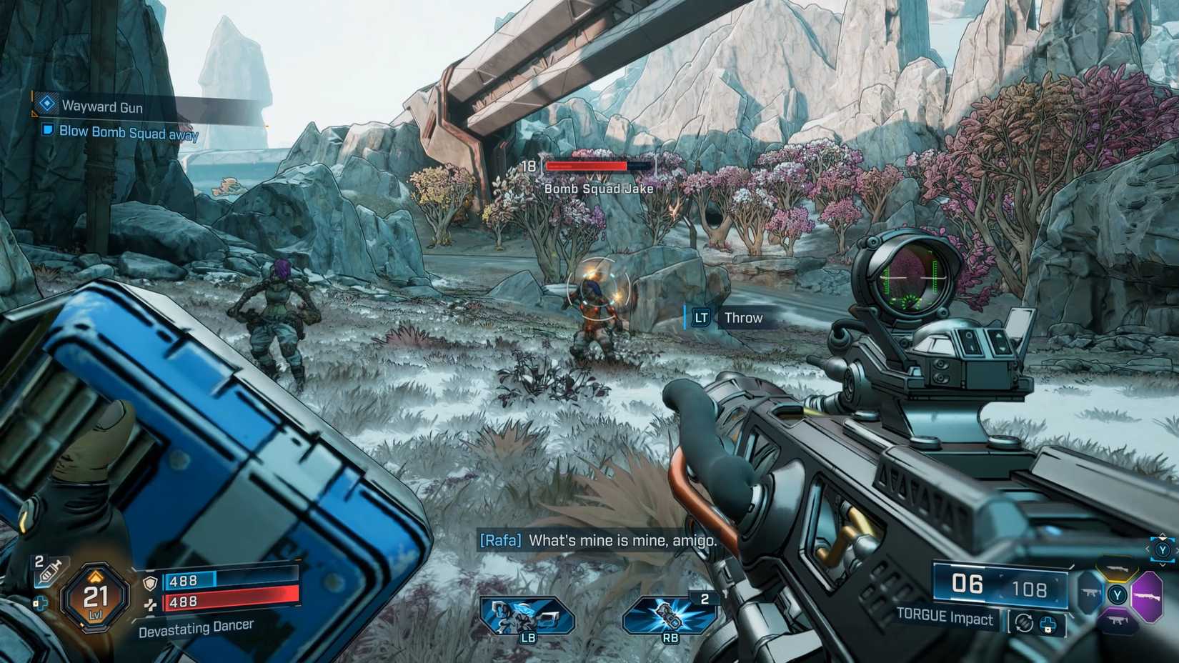 到达Rock Bottom后,玩家需要消灭该地区的几个步行炮塔。一旦你击败了他们中的大部分人,任务目标将变为“与 PEWPEW 和他的军队作战”。