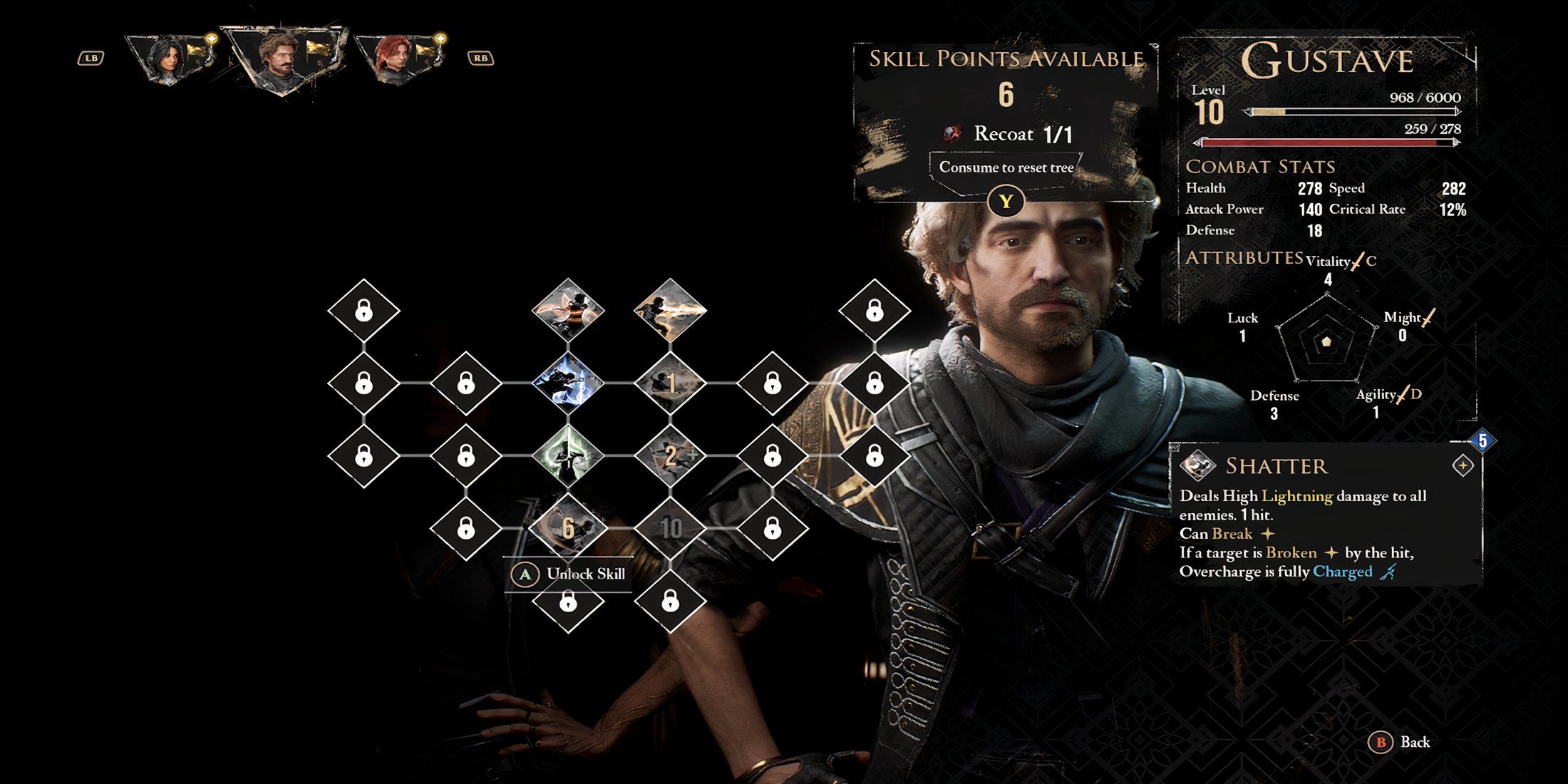 一旦锁定到正确的类别,属性点就可以提高统计数据,例如生命值。在《Clair Obscur: Expedition 33》中升级时有如此多的技能可供选择,即使有重新指定的能力,也很难知道该选择什么。玩家将从 Gustave、Lune 和 Maelle 开始,所以让我们重点关注他们的技能树,以及在 Clair Obscure: Expedition 33 中为他们解锁最好的早期游戏技能。
