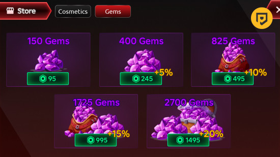 宝石是高级货币,您可以通过赢得排名比赛或直接使用 Robux(真钱)购买来获得宝石。拥有它们后,您可以专门使用宝石来购买新的化妆品。金币更容易获得,因为您可以通过与排名比赛一起参加普通比赛来获得金币。您可以使用此货币购买大多数决斗场武器。