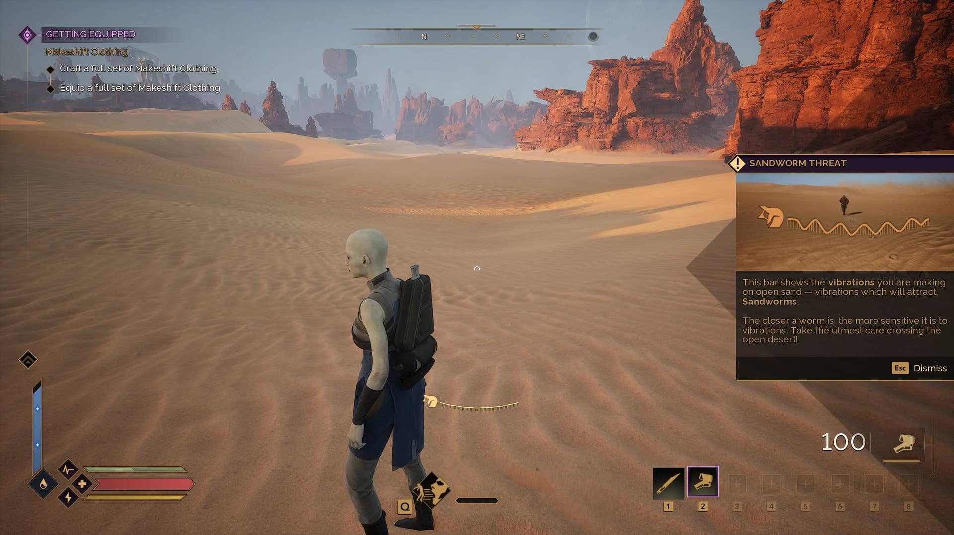我重生时感觉非常顽皮,却意识到行动的全部后果:我失去了一切。我背上和包里的所有东西都被沙虫吞掉了,不再存在,在一个东西就是一切的游戏中——而且你要花不少时间来制作这些东西——失去它会很痛苦。很多。结果,沙虫在《沙丘:觉醒》的威胁等级中获得了一个适当可怕的位置,它们也应该如此。