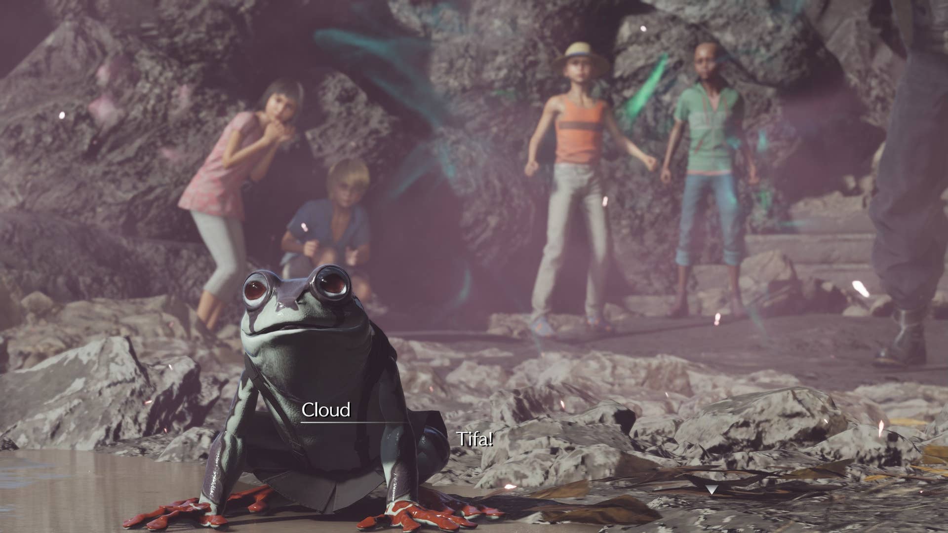 其间,一切。一百个愿景和修订。所有的支线任务都感觉与《巫师 3》中的一场山羊狩猎略有不同。莫古利争论不休。流浪的 NPC 会玩带有个性怪癖的牌,这些怪癖感觉就像原作中最意外的怪异部分一样故意怪异。黄色油漆在悬崖边缘摩擦。更多莫古利的争论。巴雷特对地球的关心通过他大部分从美丽且不可思议的古老晶体结构中爆炸出来的部分表达出来。在朱农的码头上,一位老人坐着讲述着一个共和国被神罗的贪婪所倾倒的故事,而聚集在一起的孩子们则欣喜若狂。走下楼梯,有一个小游戏,可以向你的整个队伍投掷蟾蜍,让你玩“糖豆人”。