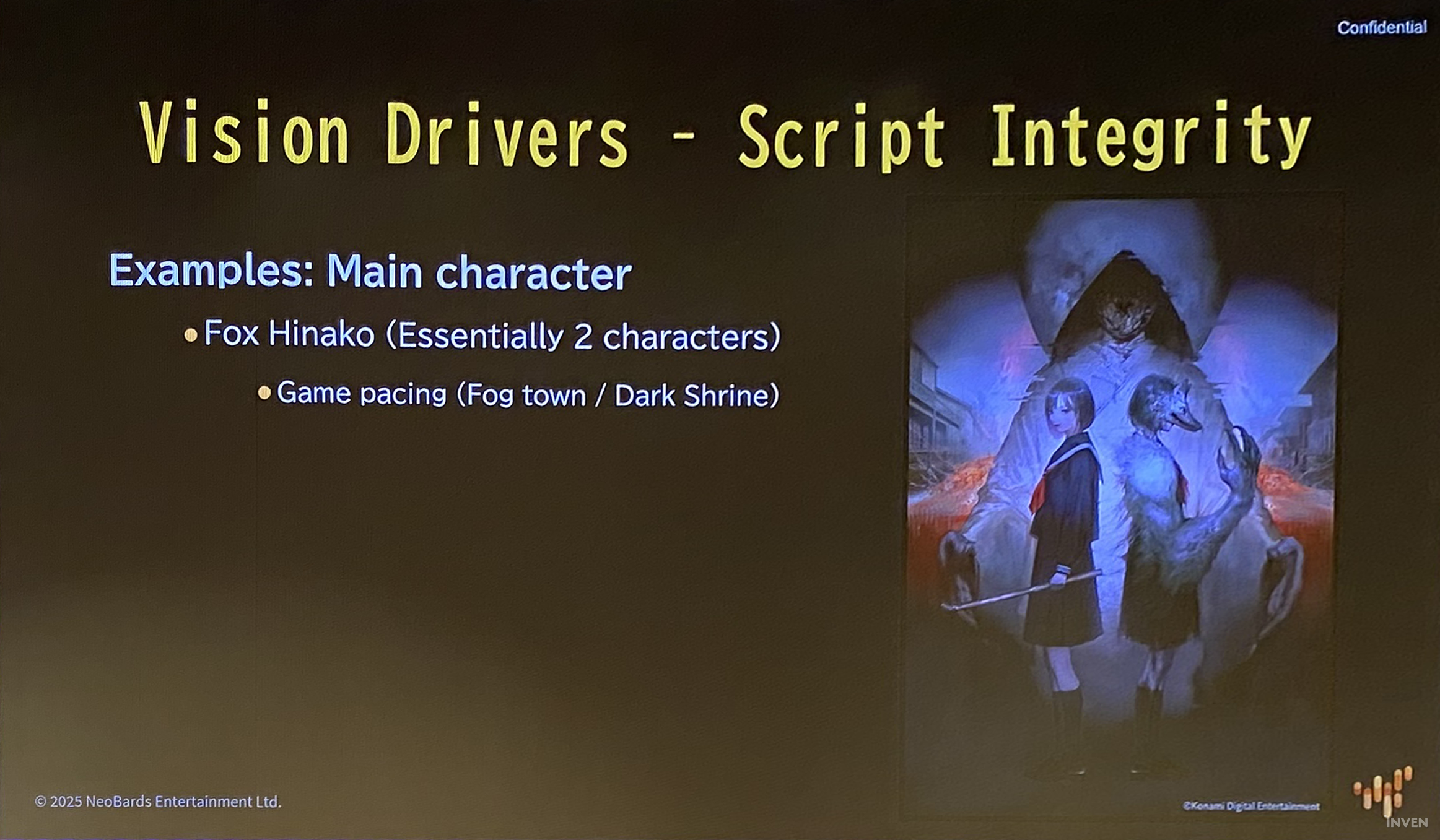 杨总监强调,通过与IP所有者KONAMI的不断沟通,确保作品不偏离《寂静岭》的感觉。他们利用“距离”、“耐久”、“耐力”等元素,最大限度地保持了《寂静岭》特有的“张力”(恐惧感和紧张感)。