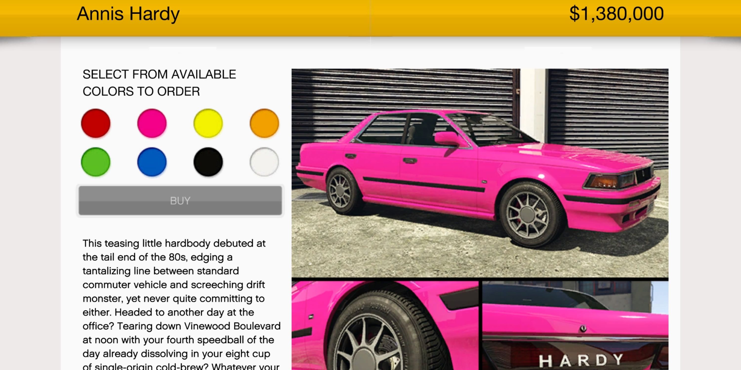 Annis 设计的一辆像样的 4 座车将允许玩家以平均速度和良好的跟踪穿过好麦坞大道 (Vinewood Boulevard) 及更远的地方,这使得一辆外观普通的汽车不应该花费太多,因为这不会是一辆在汽车比赛中炫耀的车辆。