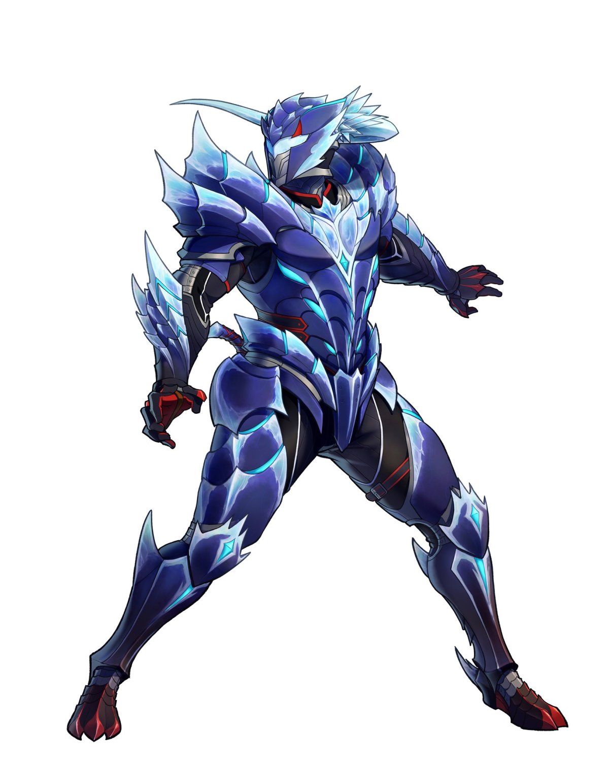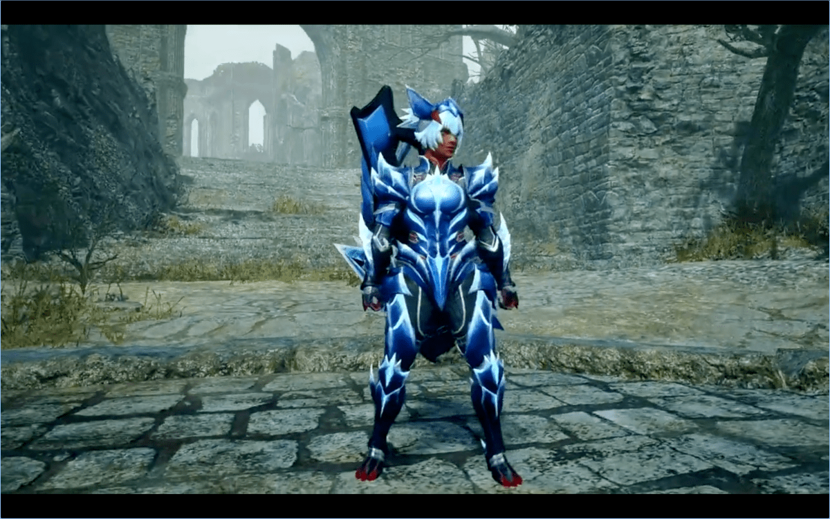首先,这是团队在为《怪物猎人:崛起》、《日出》、《月光》猎人盔甲创作概念艺术时想到的两部分内容。在每种情况下,它们都是带有白色点缀的蓝色全身套装。这女士版似乎也有狼耳朵,而男士风格涉及头盔。 (与《怪物猎人荒野》不同,场景是性别锁定的。)