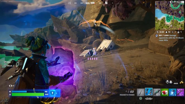 这个挑战可能会很棘手,具体取决于你遇到的人,但磁力是《堡垒之夜》中的致命武器。我发现最好的策略是将石头放在自己面前以偏转枪火并在对手重新装弹时进行攻击。