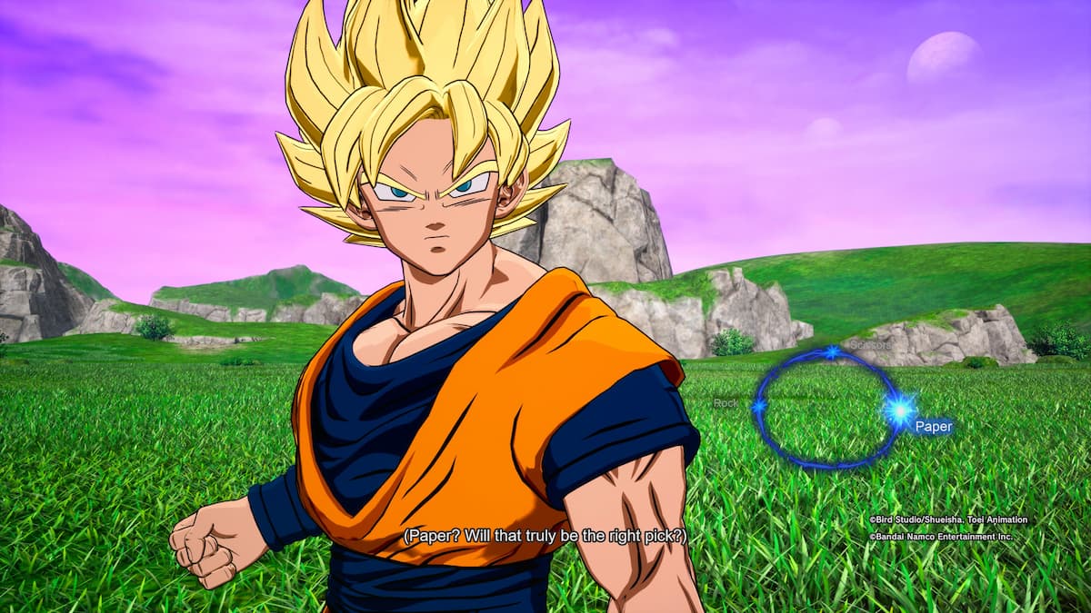 提示:在情节中“岩石,纸,剪刀的命运游戏”,悟空和贝吉塔(Goku)和贝吉塔(Vegeta)演奏了“摇滚,纸,剪刀”的游戏,以决定谁首先接替Majin Buu。悟空拉岩石,所以拉纸将让您首先与Majin Buu战斗,最终使您进入替代情节。