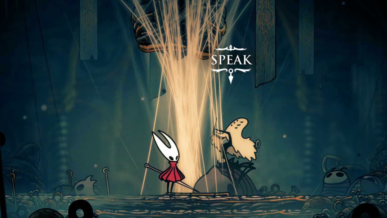 击败寡妇以释放贝尔哈特的居民(并获得针石能力),然后返回城镇,发现城镇中的所有虫子都恢复正常。贝尔哈特的所有商贩和NPC此时都会解锁——跳到上面的建筑物上,寻找门上方有 Pin 标志的建筑物.
