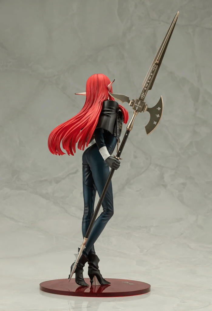 除了额外的面板之外,霍肯伯格人偶是静态的 1/7 比例人偶。她站立时的高度几乎为一英尺(300 毫米)。她在游戏中挥舞着她的长柄武器,因为她从一开始就代表了骑士原型。她穿着游戏中的标准服装,站在与她的头发相配的红色底座上。如果换掉额外的表情部分,她会闭着眼睛,微笑着。