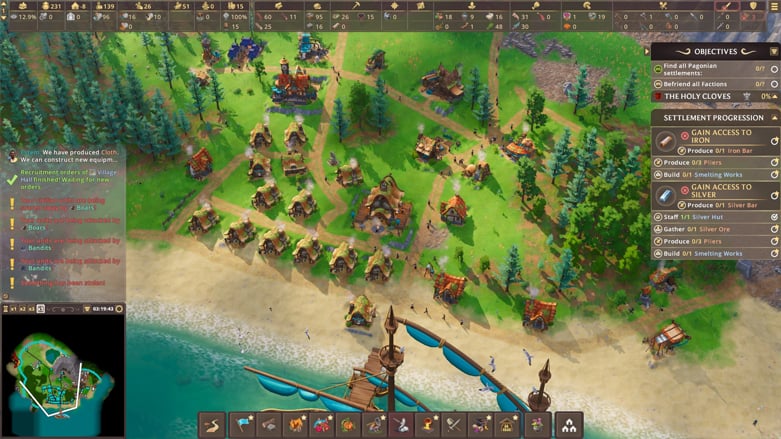 我真的非常喜欢《帕格尼亚先锋》中的整体经济系统。游戏的特定供给和需求方法让你的城镇感觉完全充满活力并依赖于其工业。例如,假设您想为警卫室提供必要的五名警卫来管理它。这样做需要采集者收集石头和棍棒,将这些材料带到车间,车间将制造五根长矛,然后可以在市政厅使用它们来手动训练五名警卫。这只是正在运行的单个小型生产链的一个例子,并没有提及警卫塔本身的实际建筑。
