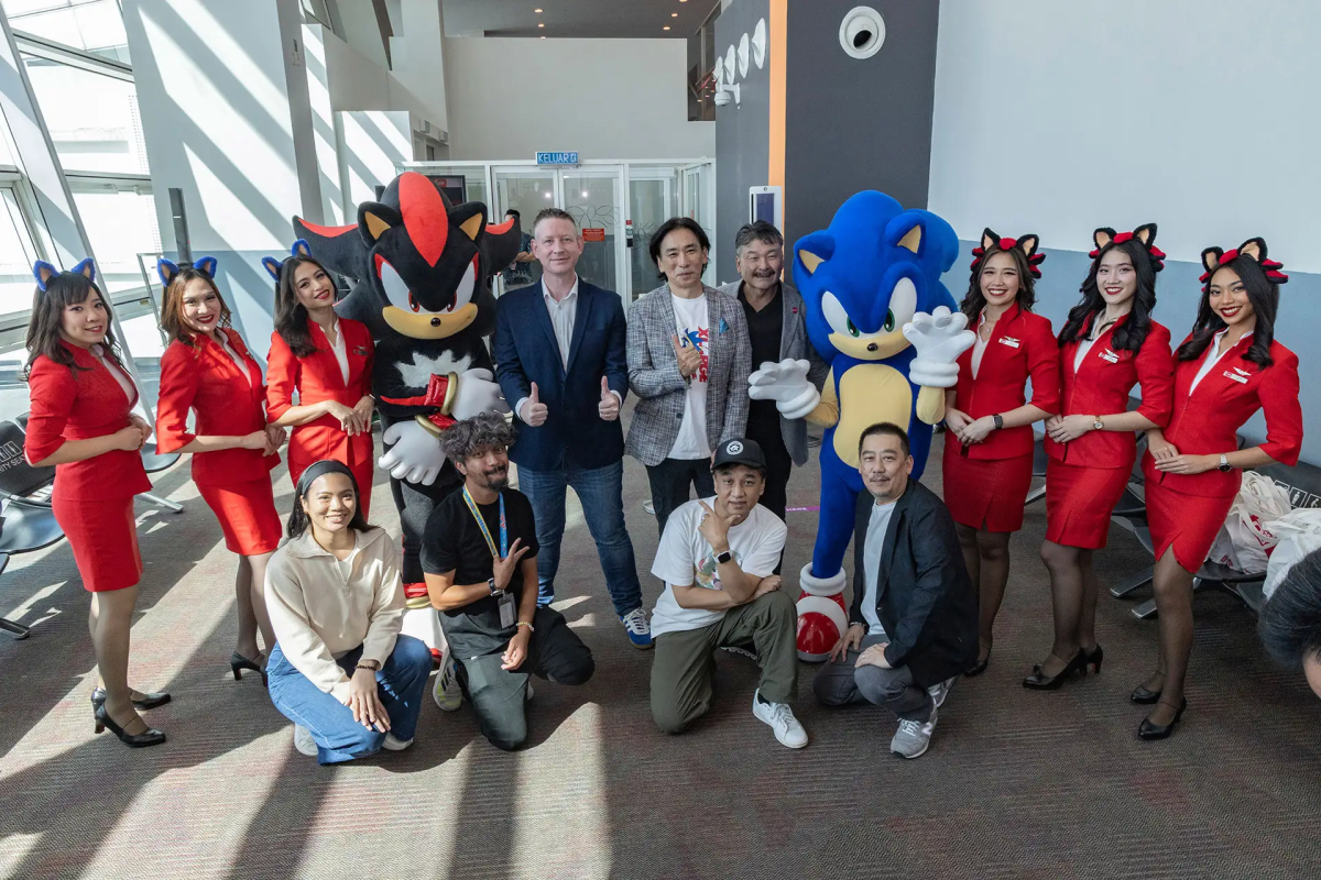 世嘉总裁兼首席运营官内海修二和亚航首席商务官保罗·卡罗尔在索尼克和影子吉祥物的陪同下为新航班揭幕。该航班从吉隆坡起飞,降落于泰国曼谷。