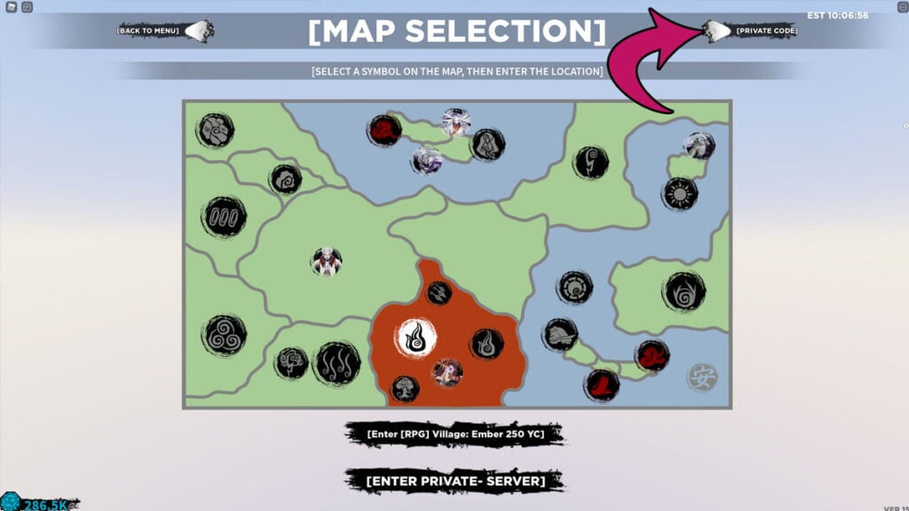 要在游戏中使用私人服务器代码,您需要前往地图选择区域,然后在屏幕右上角的“[私人代码]”文本字段中输入代码!
