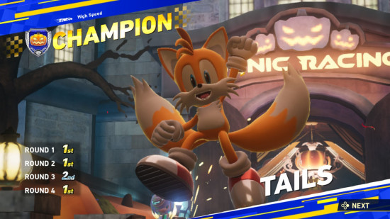 我不喜欢门户机制的另一件事是它导致了一场平淡无奇的比赛系列结局。如果您不知道,大奖赛中有四场比赛,而《索尼克赛车:交叉世界》在地图选择菜单中只为您提供了其中三场比赛。这是因为最后一场比赛是在之前的每条赛道上跑一圈,这是一个巧妙的噱头,但最终对我来说是失败的,因为它并不让我觉得我取得了任何新的成就。感觉没有什么大结局。