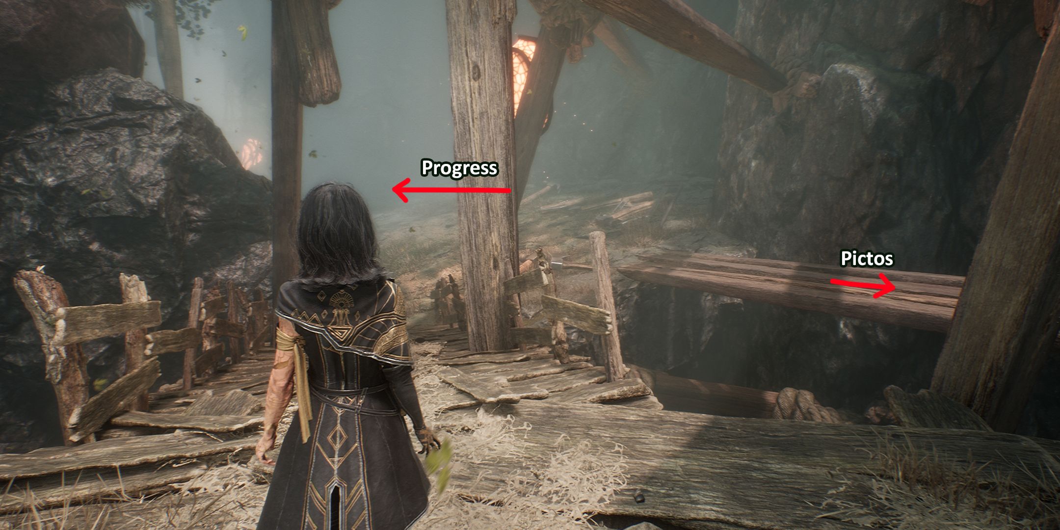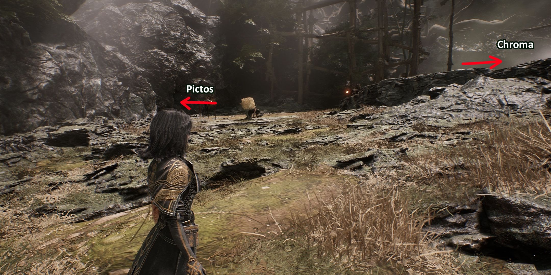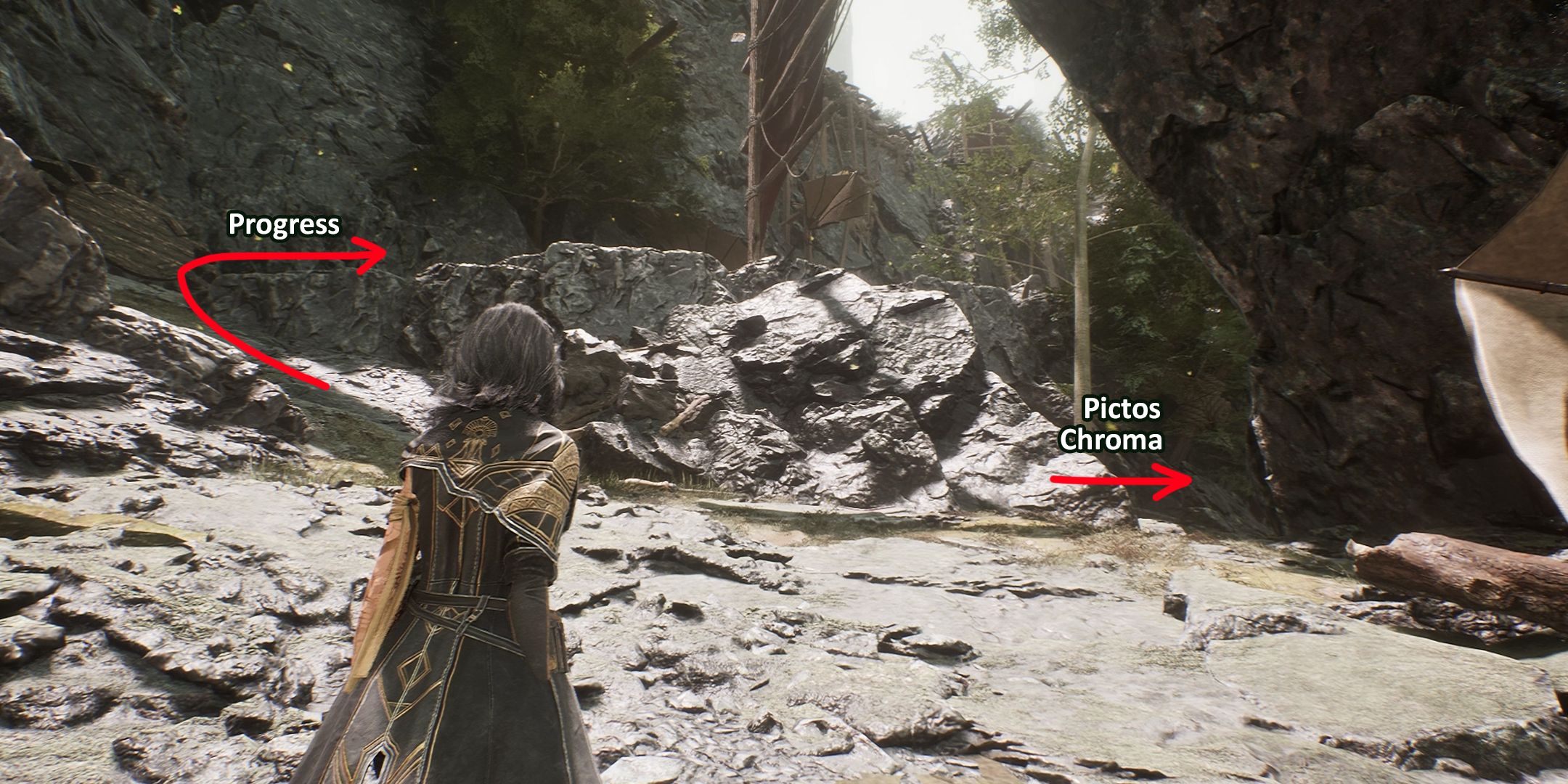 继续前进,玩家会看到左边有一条前进的路,而右转则通向 Pictos 和一些 Chroma。