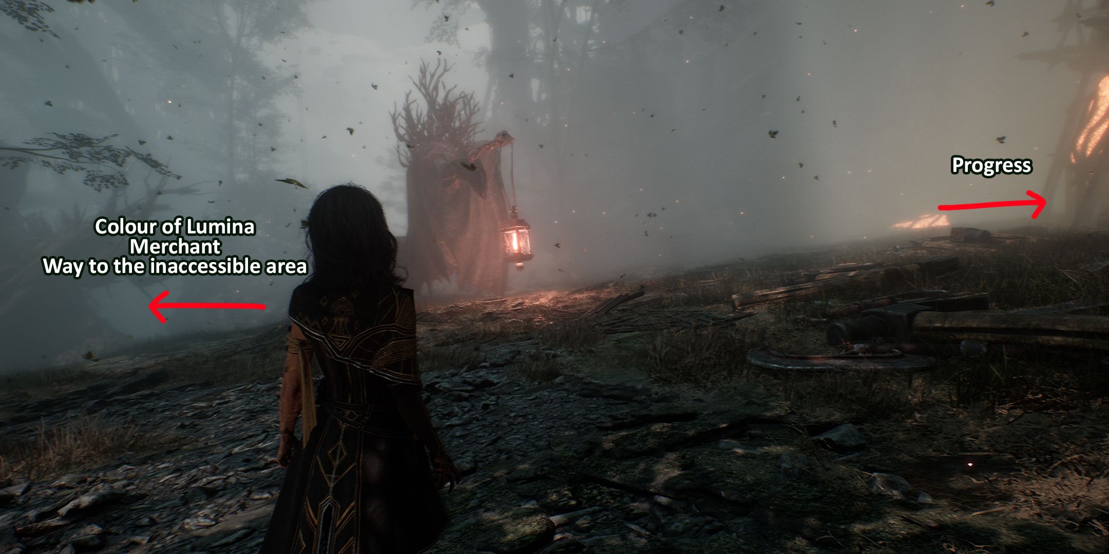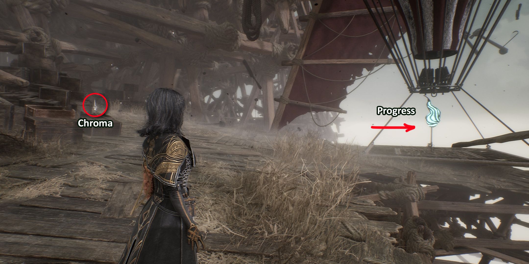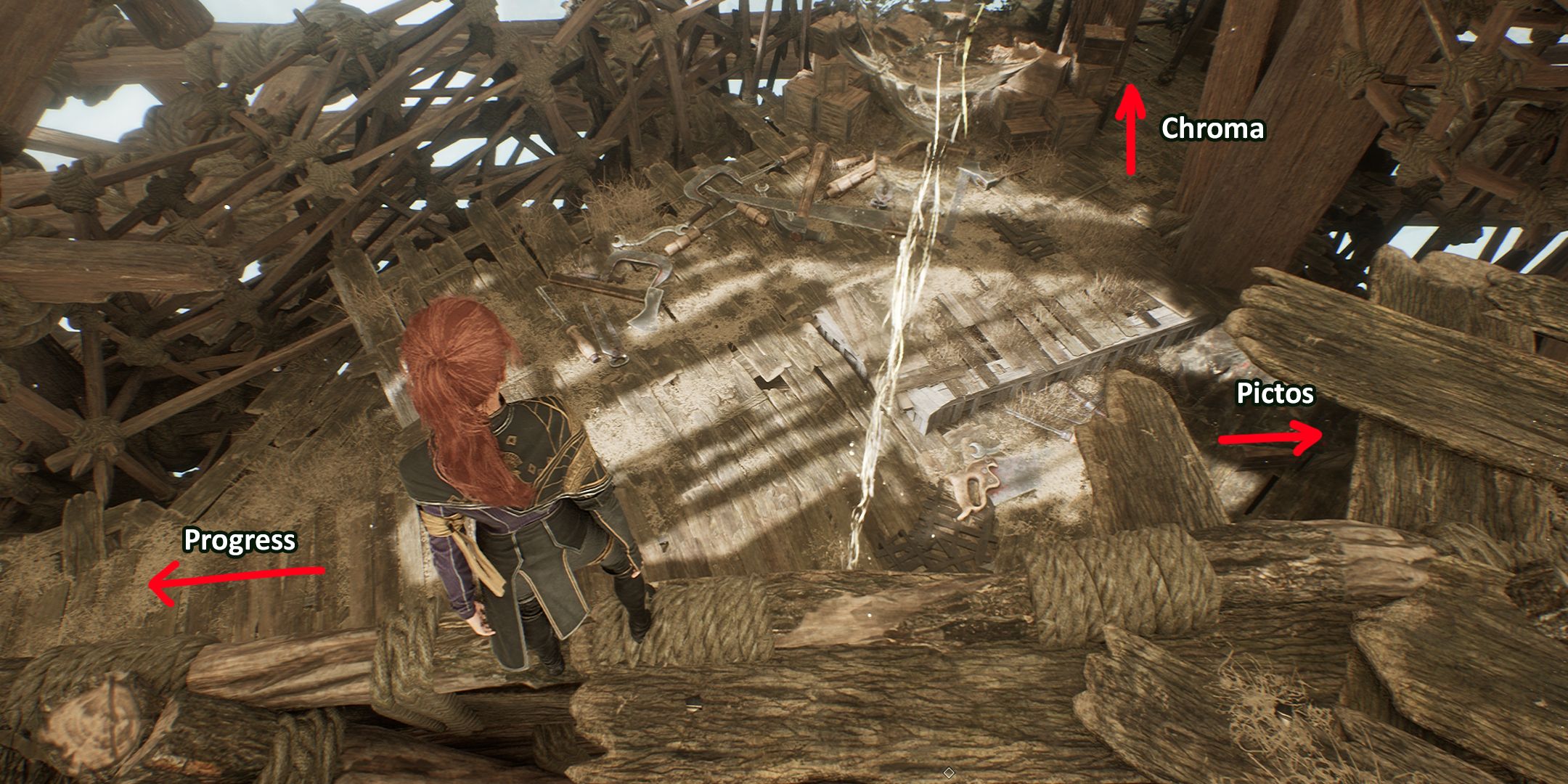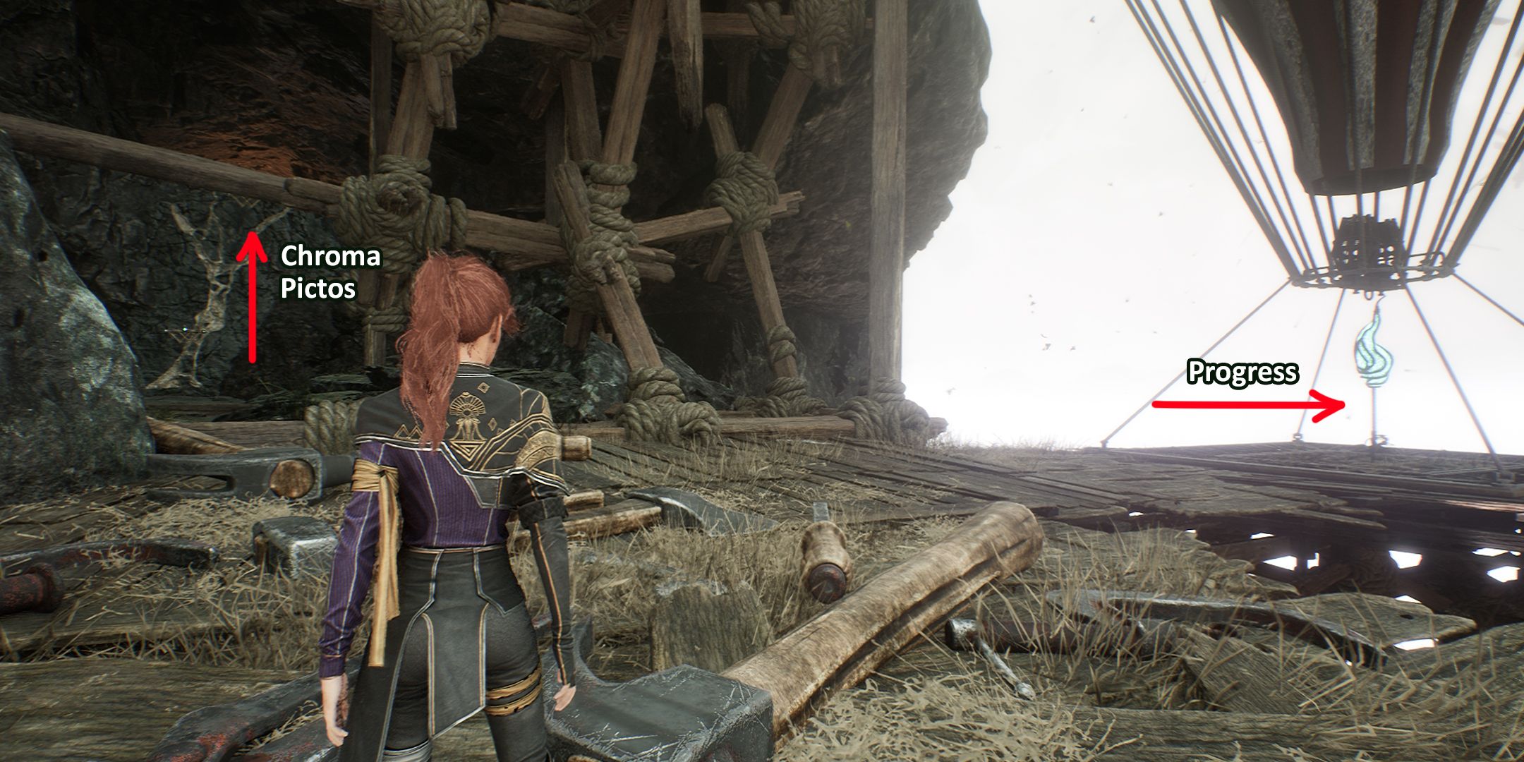 继续前进,玩家会看到左边有一条前进的路,而右转则通向 Pictos 和一些 Chroma。
