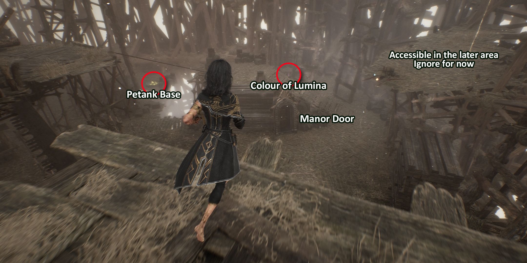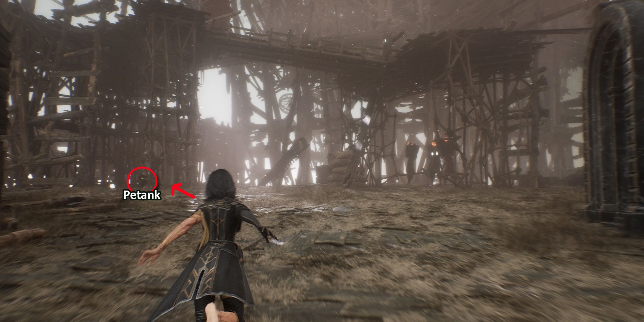 。从上方看,玩家可以看到左侧有一个 Petank 平台,这意味着附近有一个 Petank。