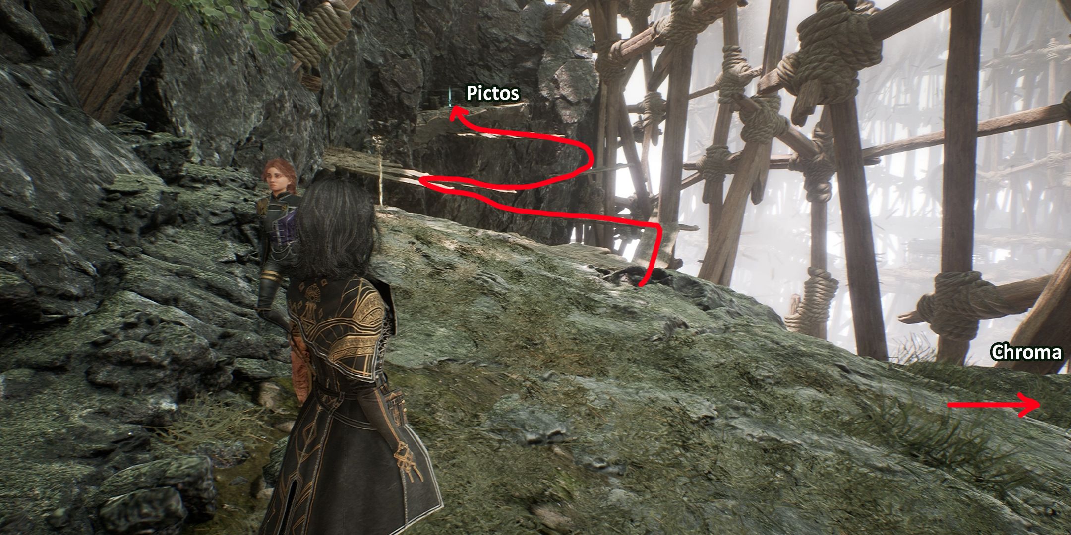 从右侧走 Chroma,然后向左走即可到达两个 Picto。