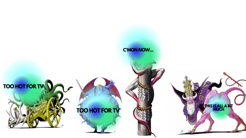 然而,您不能邀请这些人中的任何一个来参加您的家庭感恩节!如果我见过这样的行为的话,那真是一种可以取消的行为。你如何真诚地与阿里奥克(左二)一起走进来并再次看着你祖母的眼睛?他们太性感了!当塞里昂大师(最右边)在我对面发生这一切时,你希望我能够吃土豆泥吗?我不知道你是怎么想的,但我会因为太困惑、心烦意乱、太好奇而无法吃完晚餐。充其量,我需要一些时间躺下,扇扇风。