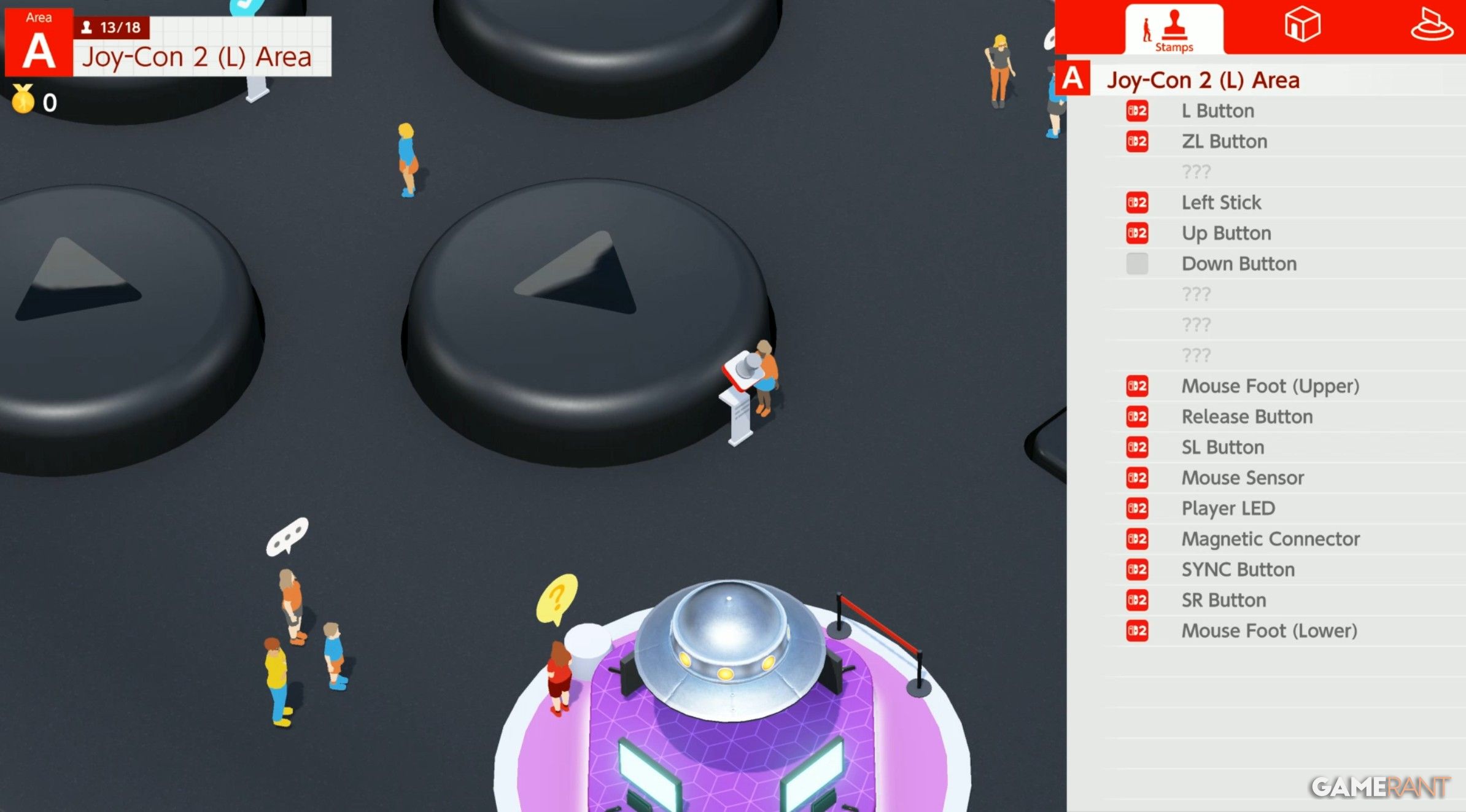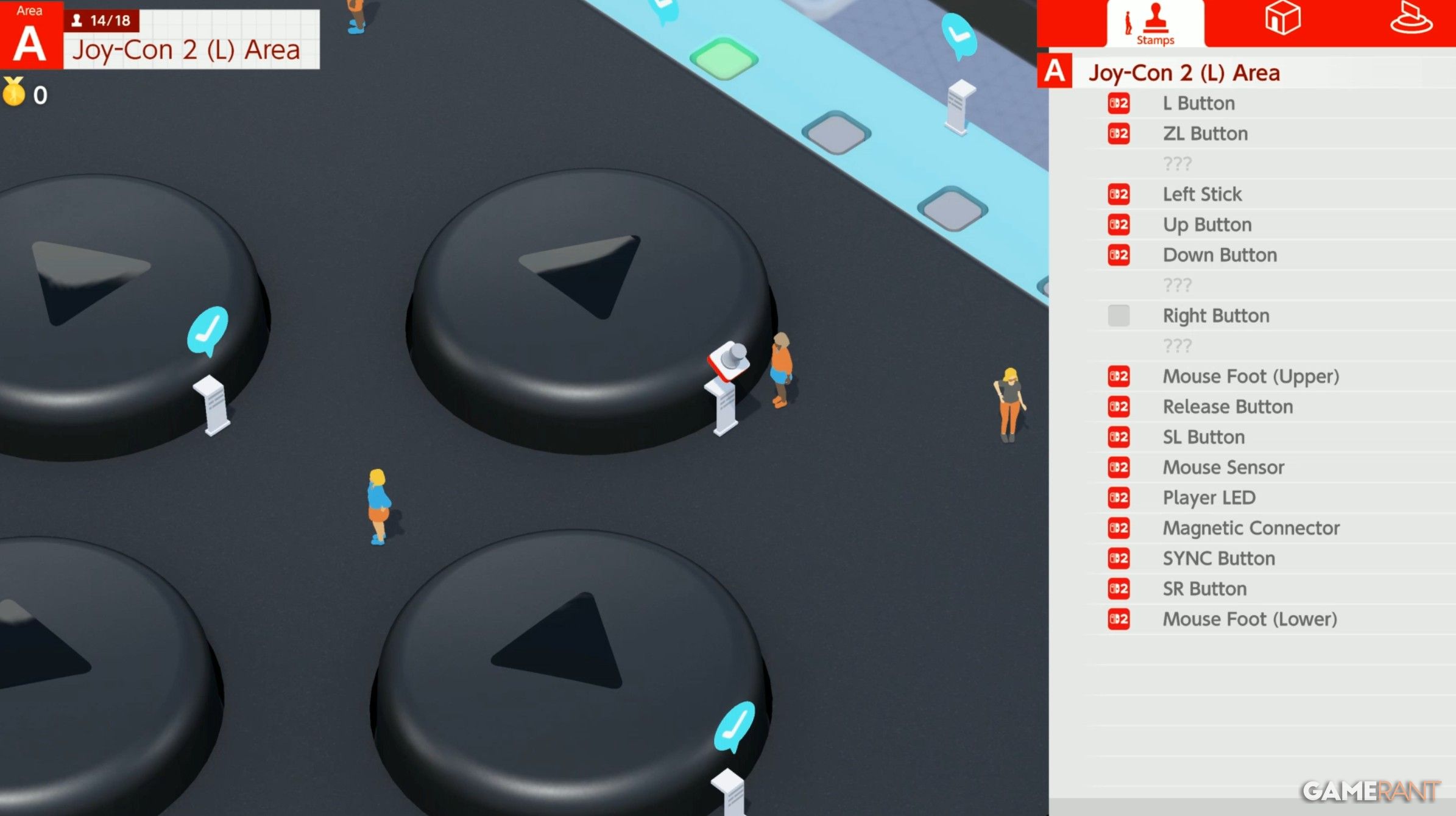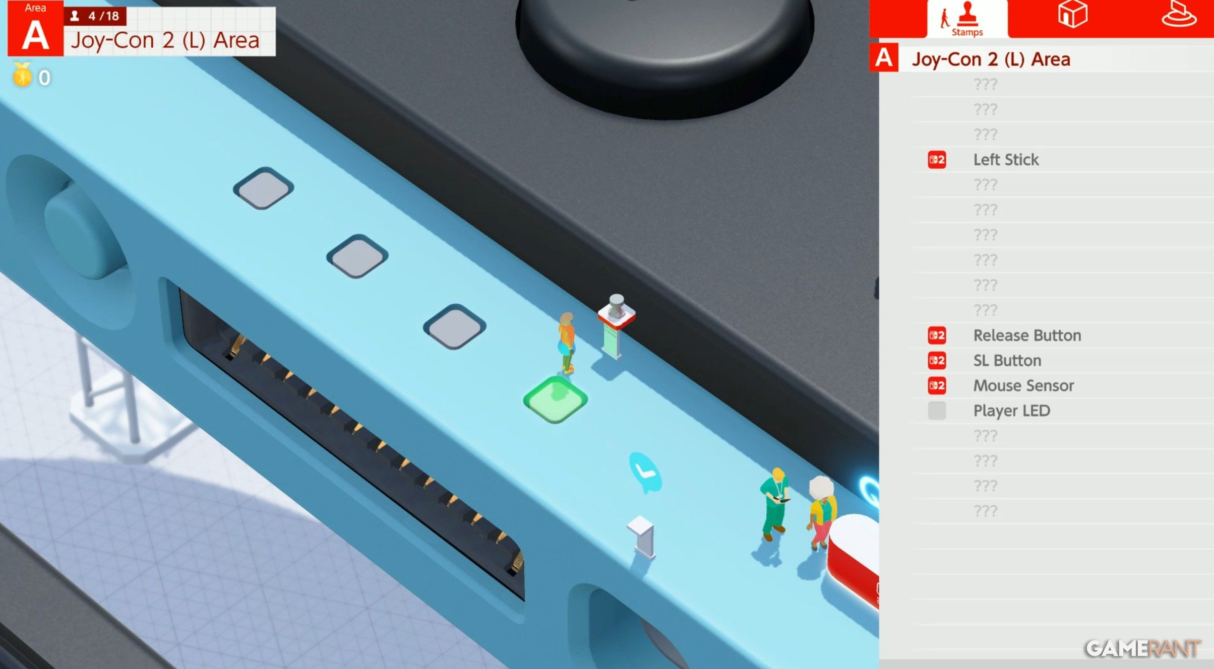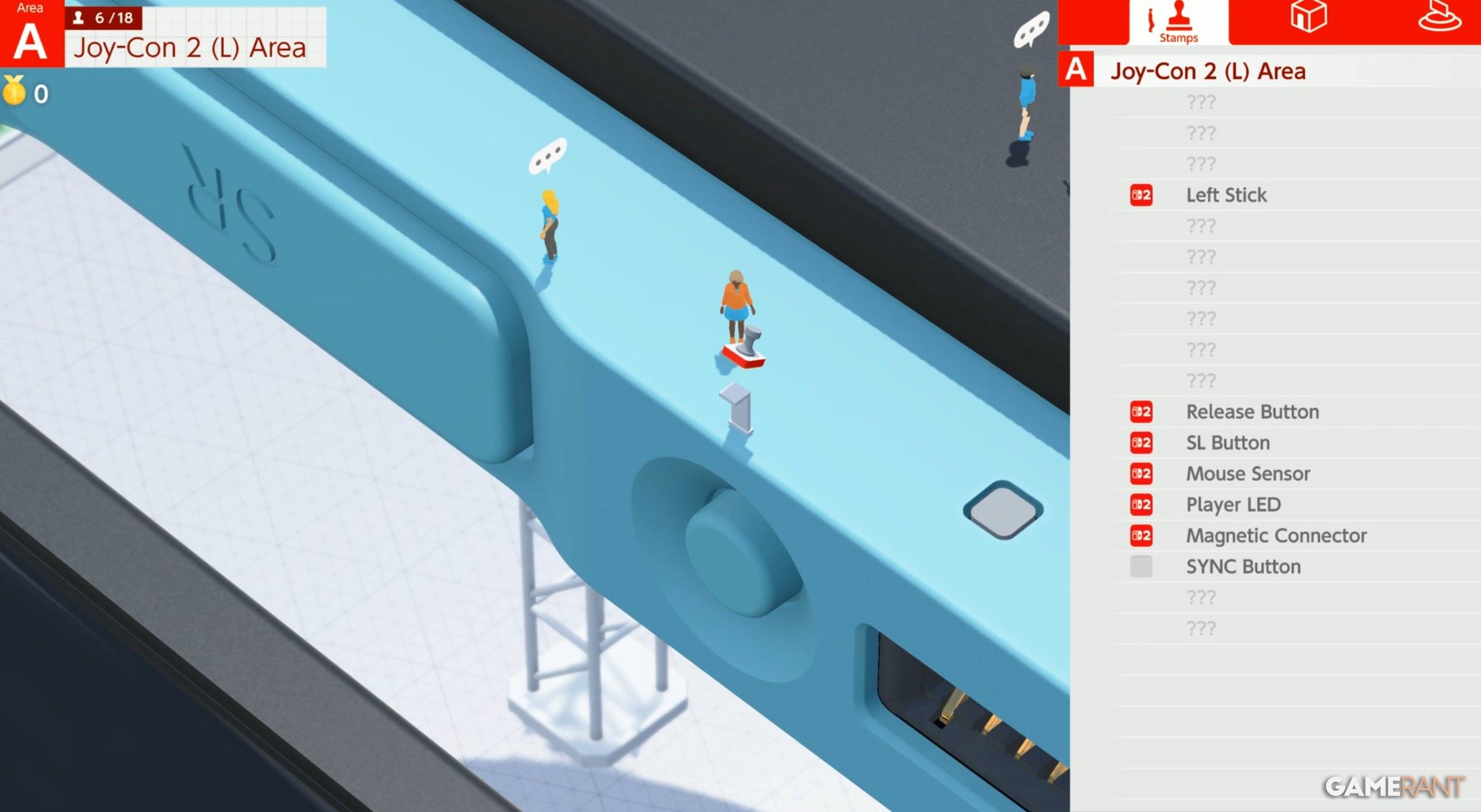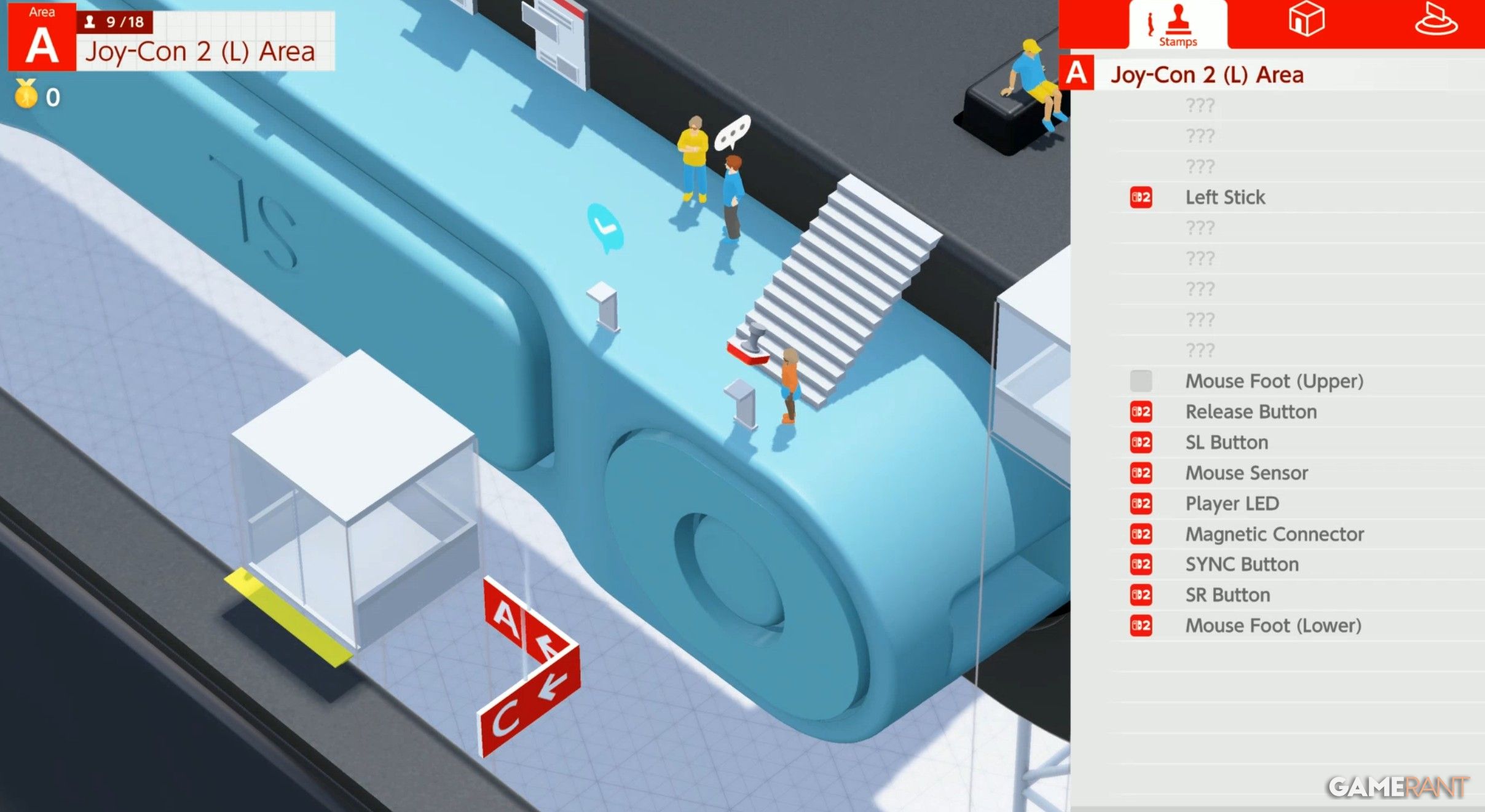 选择您的外观后Nintendo Switch 2 欢迎之旅,您将能够探索游戏的第一个区域,即 A 区,该区域将突出显示任天堂最新游戏机的左侧 Joy-Con。有几个迷你游戏可以尝试,可以玩技术演示,18邮票收集,以及三个测验通过(或失败!)