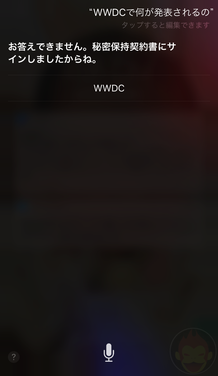 我很好奇西里到 ”WWDC 将宣布什么” 当我检查时,“是演讲的内容吗?据我所知,有一件令人惊讶的新事……之类的事情!我几乎不小心说话了。危险,危险。“他告诉我。看来将会宣布一些新的、令人惊讶的事情。”