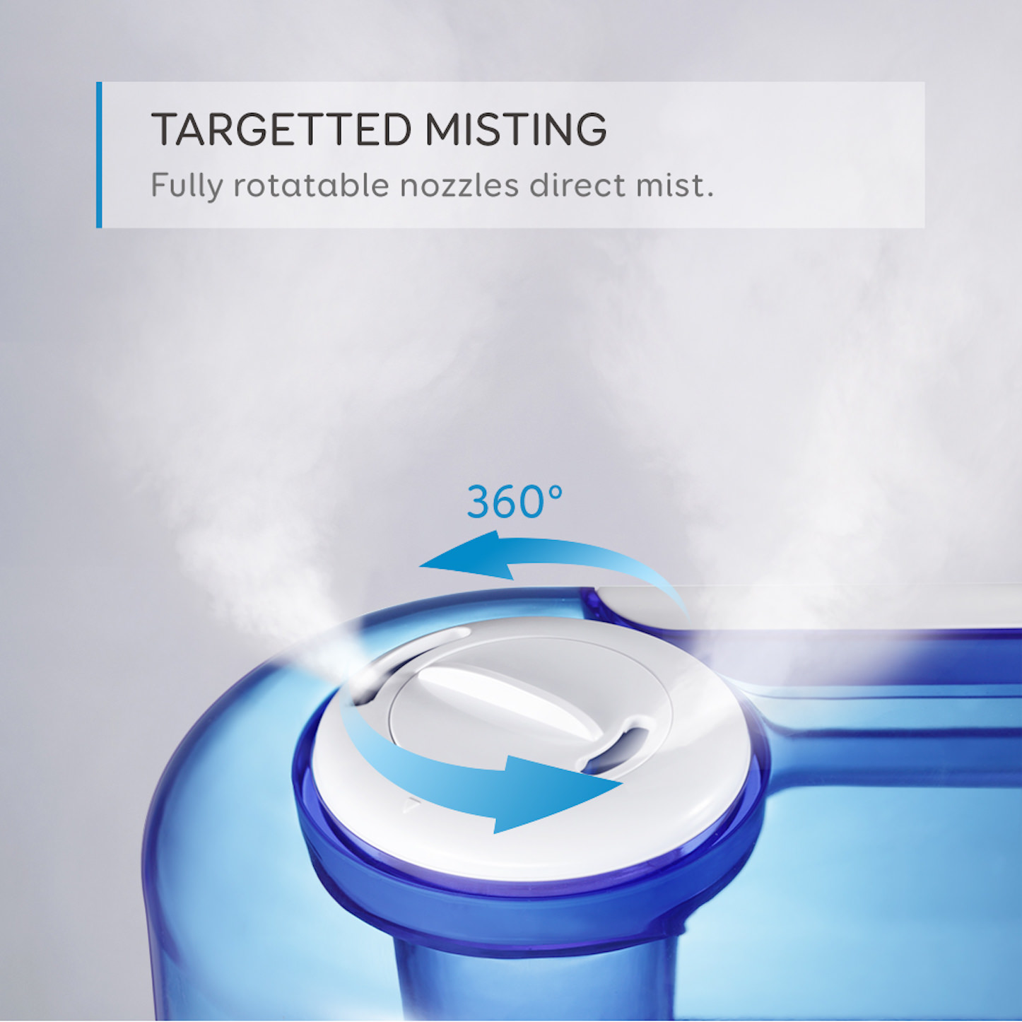 3阶段湿度调节可能来自。有两个可360度移动的喷嘴,可以自由调节加湿方向。