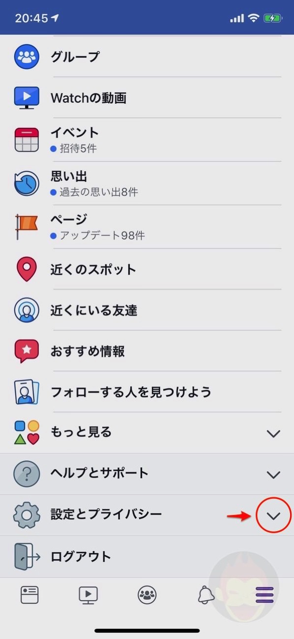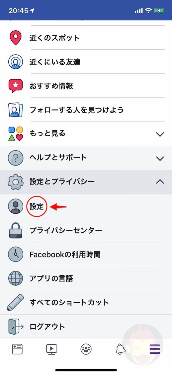 要进行设置,请启动 Facebook 应用程序,点击“设置和隐私”将其展开,然后点击“设置”中的设置。