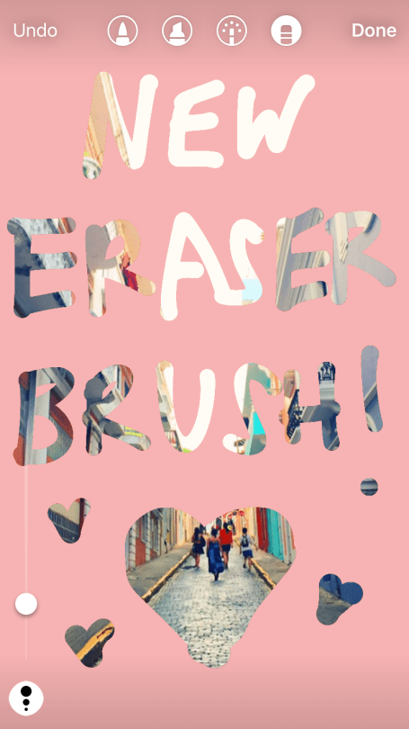 绘图工具内部橡皮刷还添加了。如下所示,如果以照片为背景填充单一颜色,并使用橡皮刷书写文字,则只有填充的颜色会消失,并且通过字母之间的间隙可以看到照片。时髦的...!