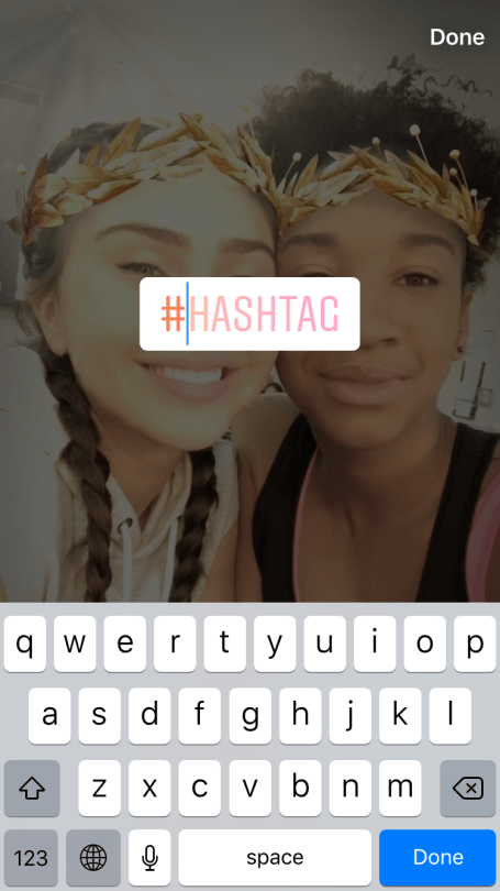 您还可以录制反向播放的视频。倒带”功能和 Hastag 可以作为图章放置在图像上。标签贴纸” 也可用。