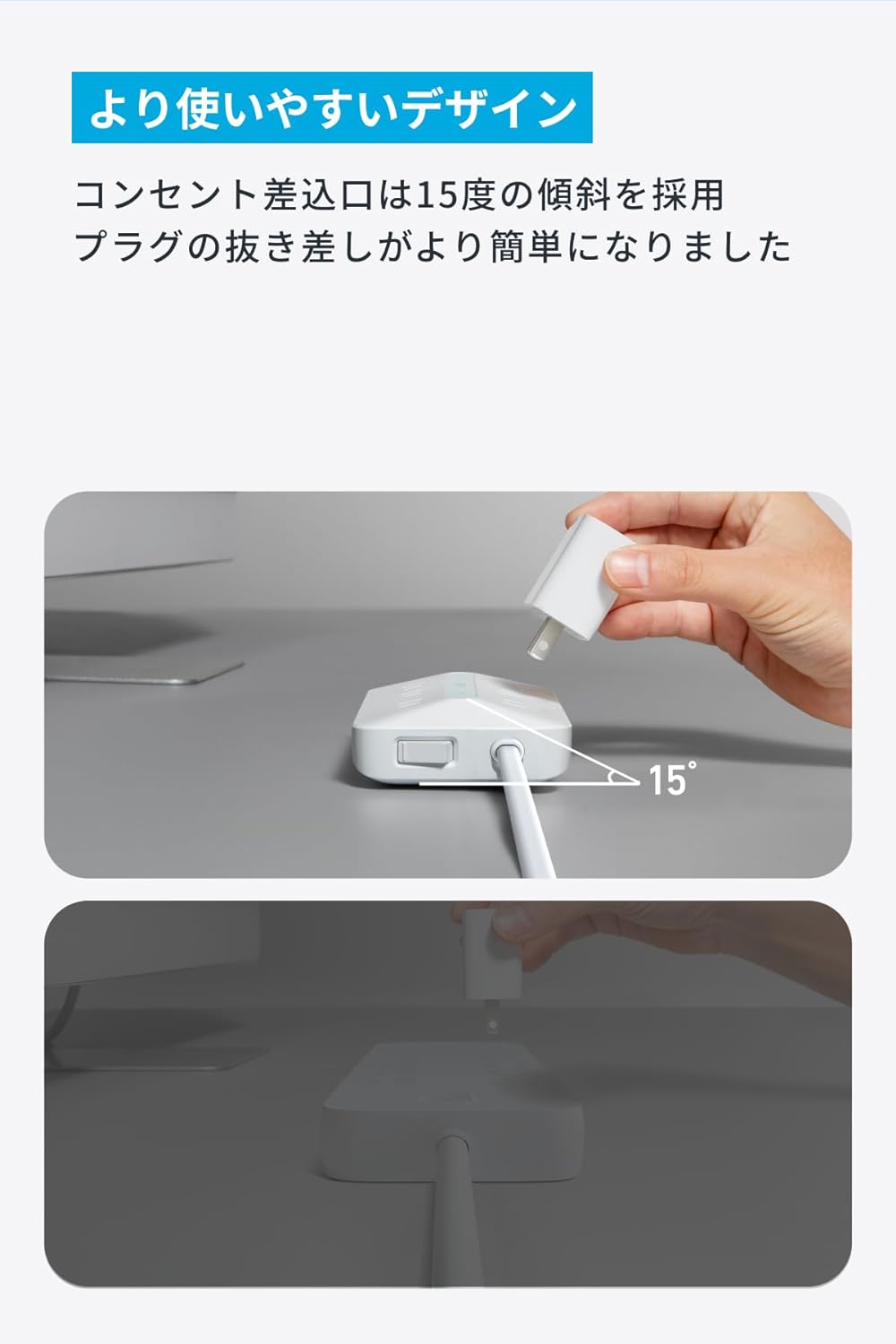 安克是2月29日,新的电源板产品Anker USB 电源板(10 合 1,20W)”现已发售做过。厚度3厘米除了不妨碍桌面的设计外,易于插入的设计,带有倾斜插座已经实现。