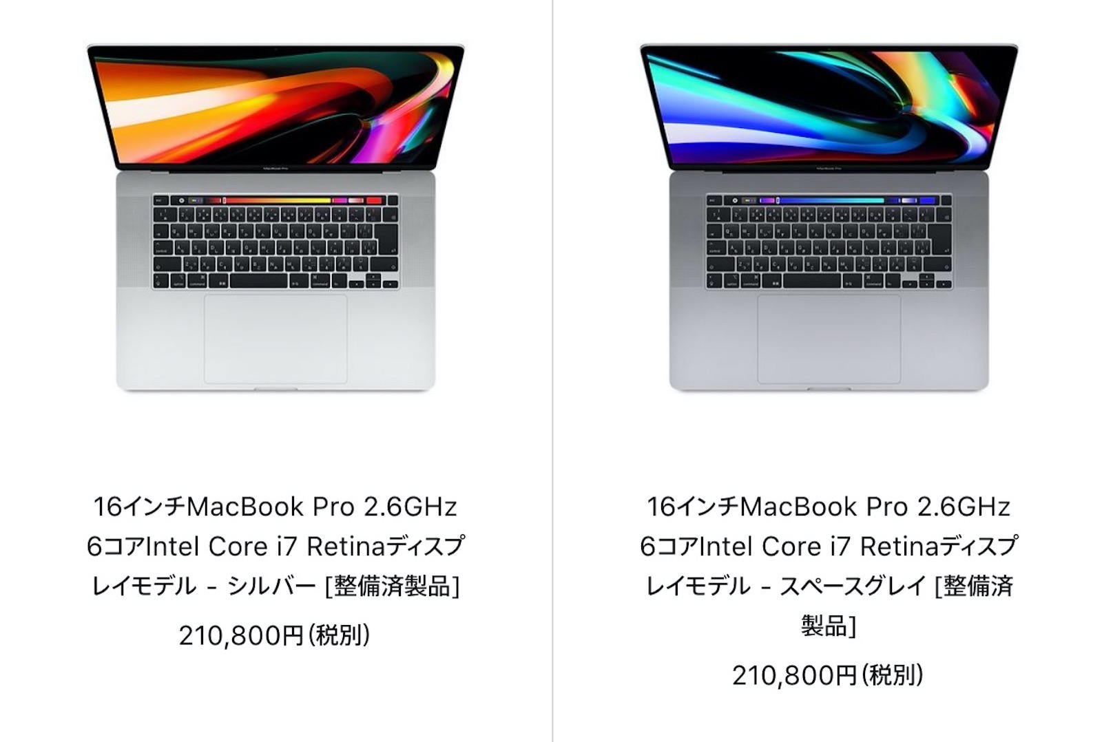 - 16寸MacBook Pro2.6GHz 6 核 Intel Core i7 Retina 显示屏型号 – 银色:210,800 日元