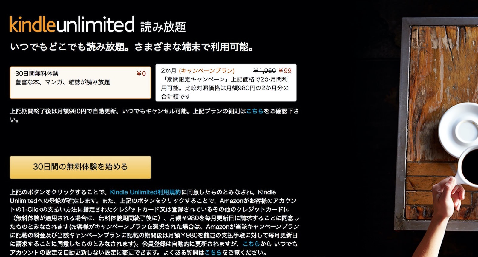 Kindle无限阅读服务「Kindle无限”是一项只需 99 日元即可使用 2 个月的活动。正在举行。如果您在活动期间注册,原价为 1,960 日元(980 日元 x 2 个月),但是优惠 1,861 日元(95% 折扣)。该活动是截止到8月20日。