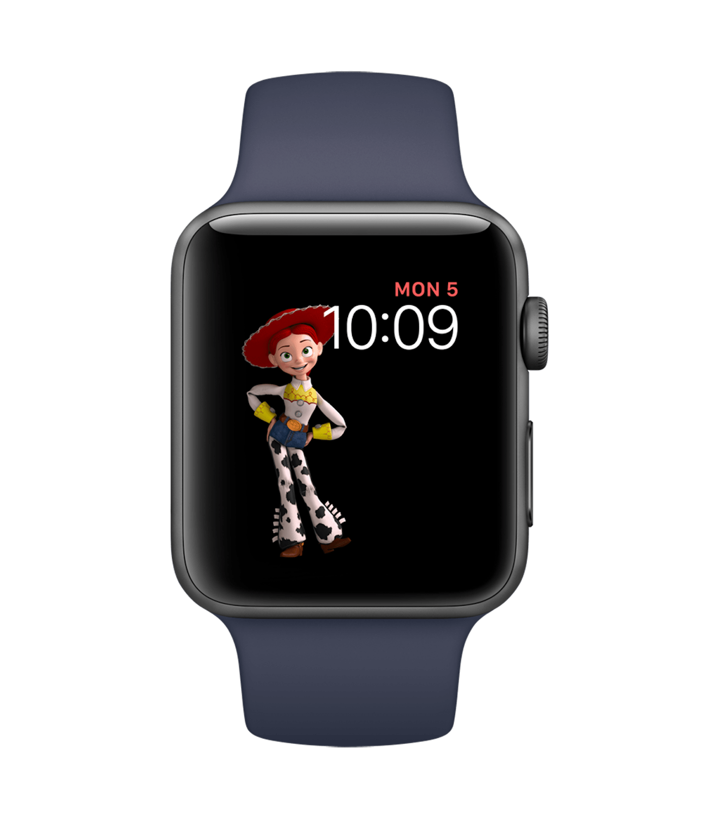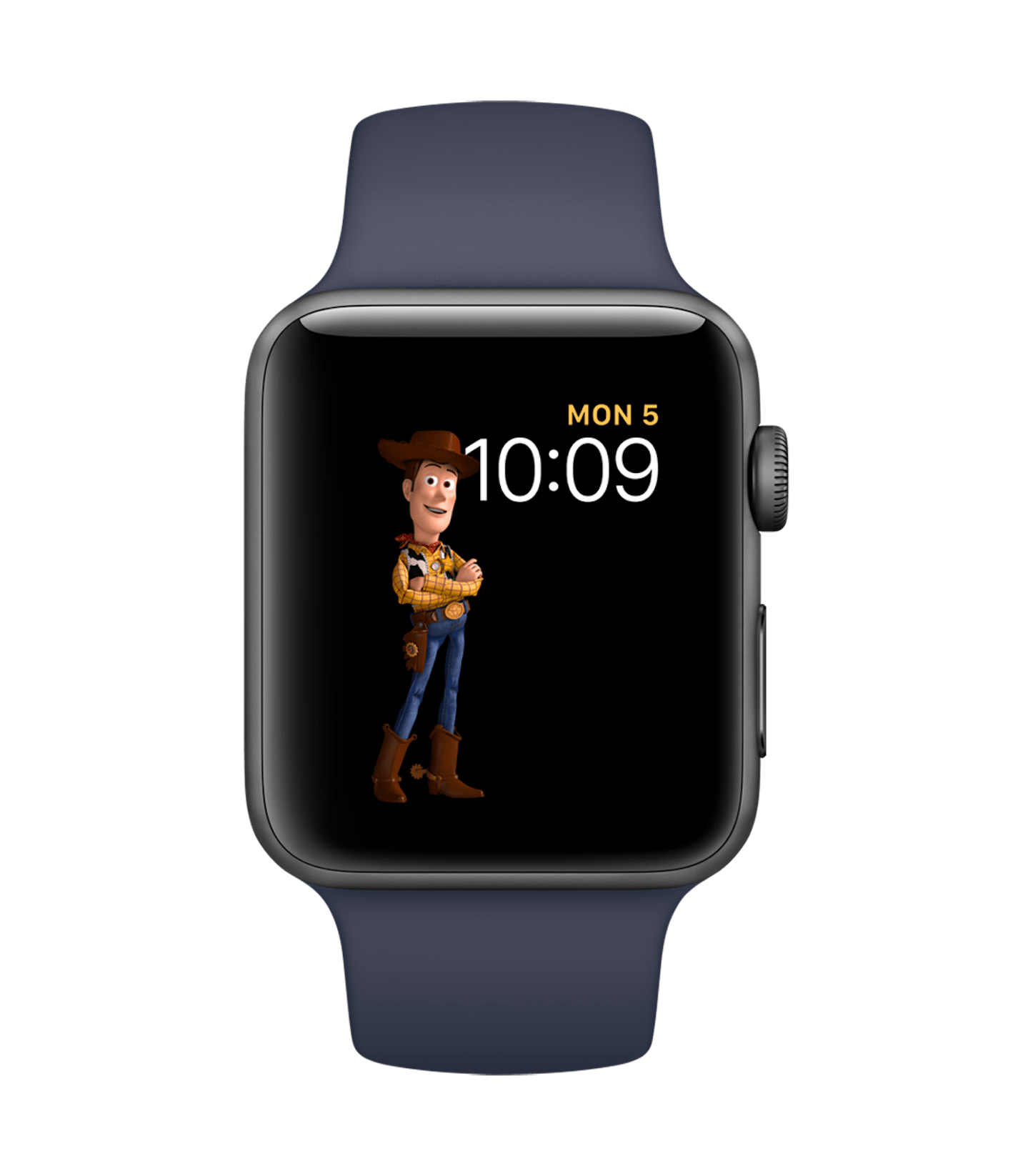 「watchOS 4'新的西里增加了特殊表盘和万花筒设计表盘,继米奇和米妮之后,又新增了玩具总动员系列表盘(伍迪、杰西和巴斯光年)。