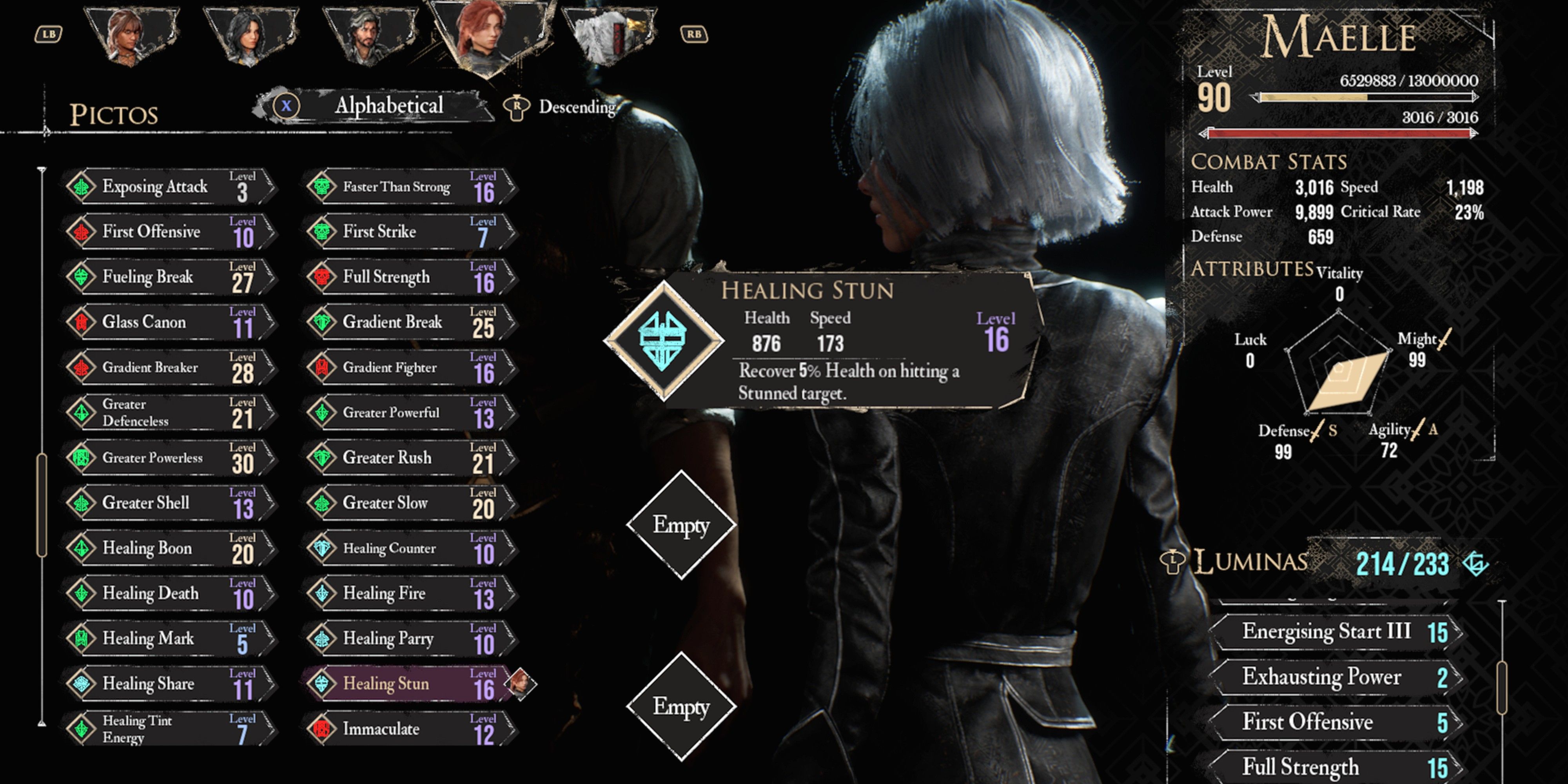 清晰晦澀:探險33為玩家提供了數十個獨特的Pictos,為主要角色創建了各種層壓式的構建,包括Verso,Maelle,Sciel,Lune和Monoco。每個角色的Lumina點沒有帽子,玩家也可以自由地將所有人變成OP殺死機器或最終的治療師或支持者。但是,一旦玩家完全掌握了整個Picto和Lumina系統,他們可能會發現一些Pictos並不值得裝備。